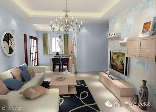 柔然的沙发,蓝色的背景墙,搭配在一起凸显出来的是浪漫的欧式风情,这种简约的家居设计让风格更加出彩,电视墙的柜体设计是非常简约的,不乏大气的设计质感,蓝色的花纹设计让色彩变得更加跳跃,空间搭配看上去很浪漫。