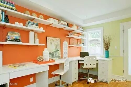 卧室是休息的地方,需要的是安静休闲,一般用比较浅的暖色调比较好,如米黄、橘红等,粉刷面积不宜过大,采光比较好的卧室局部使用深色更能体现房间的个性。