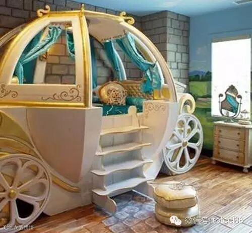蓝色天空的天花板装饰给孩子置身闲云室外的错觉。把童话世界里的南瓜车搬到室内,给她南瓜屋,幸福满满的宠爱。