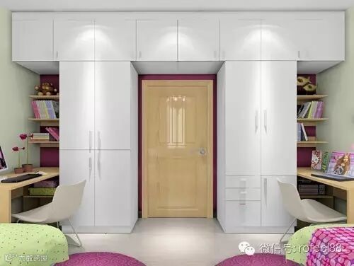这种是双人儿童房的。组合柜的设计给卧室增加强大的储物空间,两个小孩的衣物都可以有充分的空间放置。