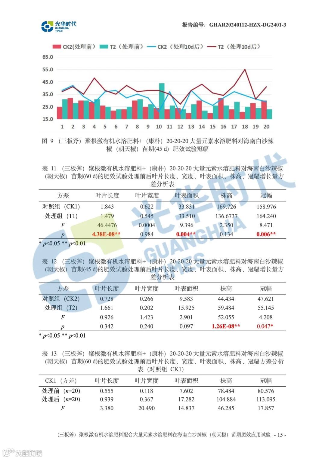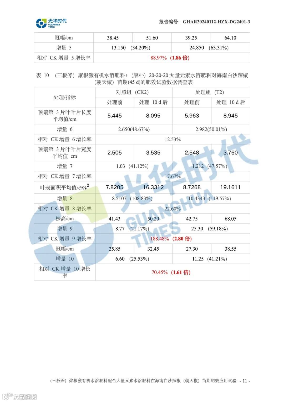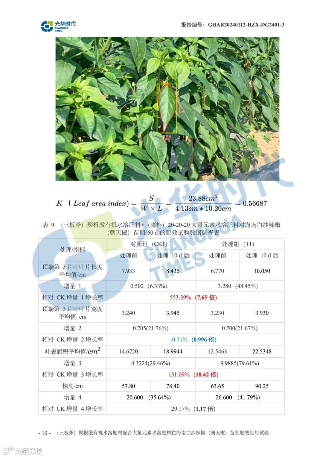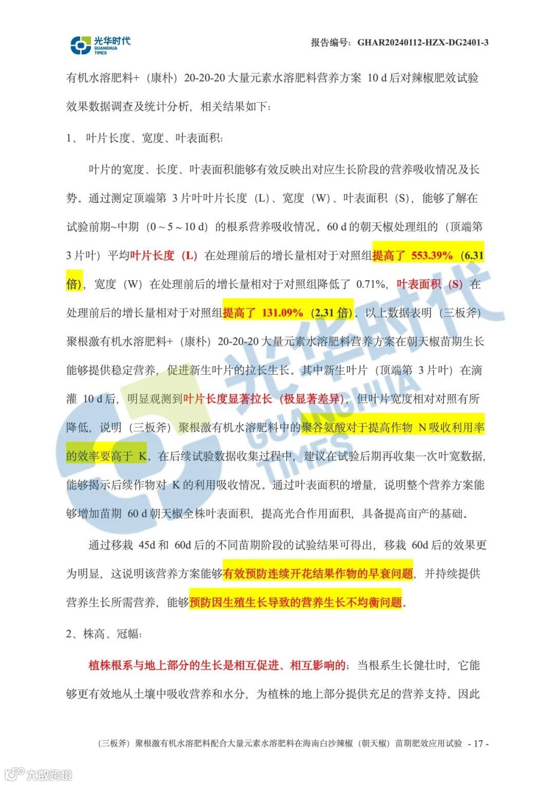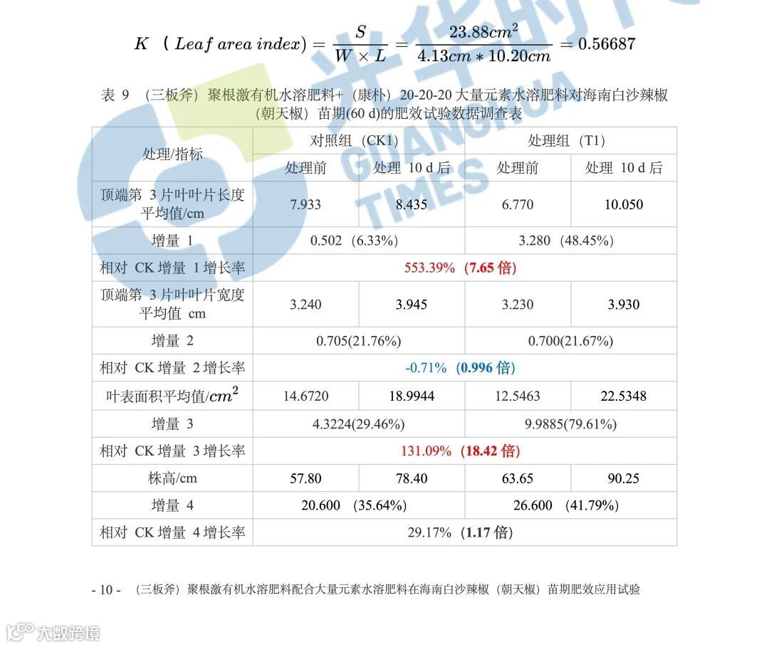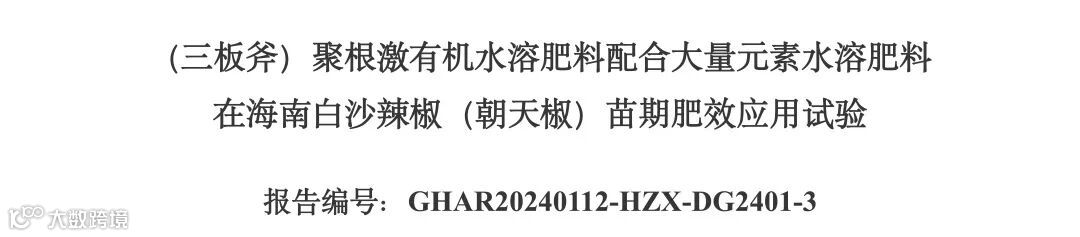 文案 | 数据来源光华时代(海南)生物科技有限公司产品应用效果试验报告《三板斧)聚根激有机水溶肥料配合大量元素水溶肥料在海南白沙辣椒(朝天椒)苗期肥效应用试验》