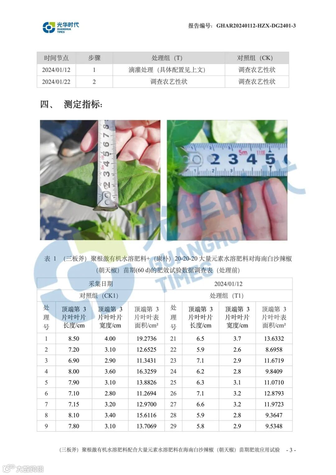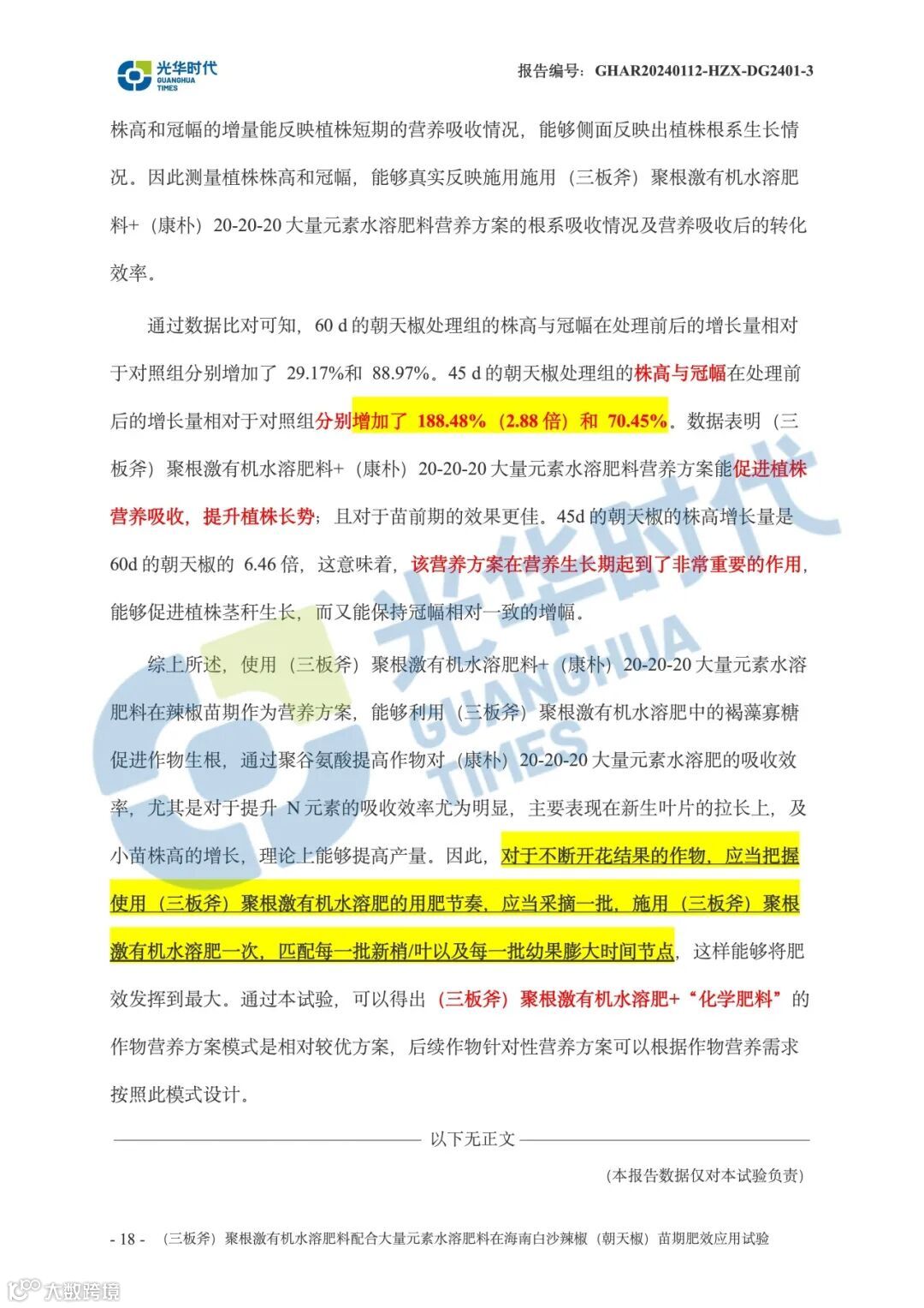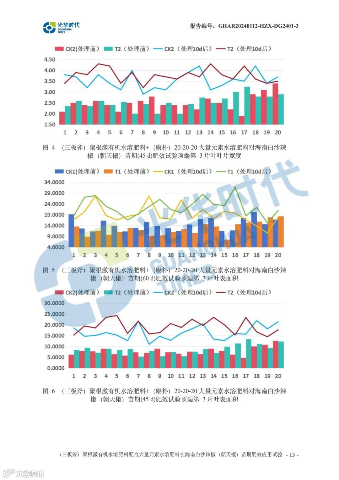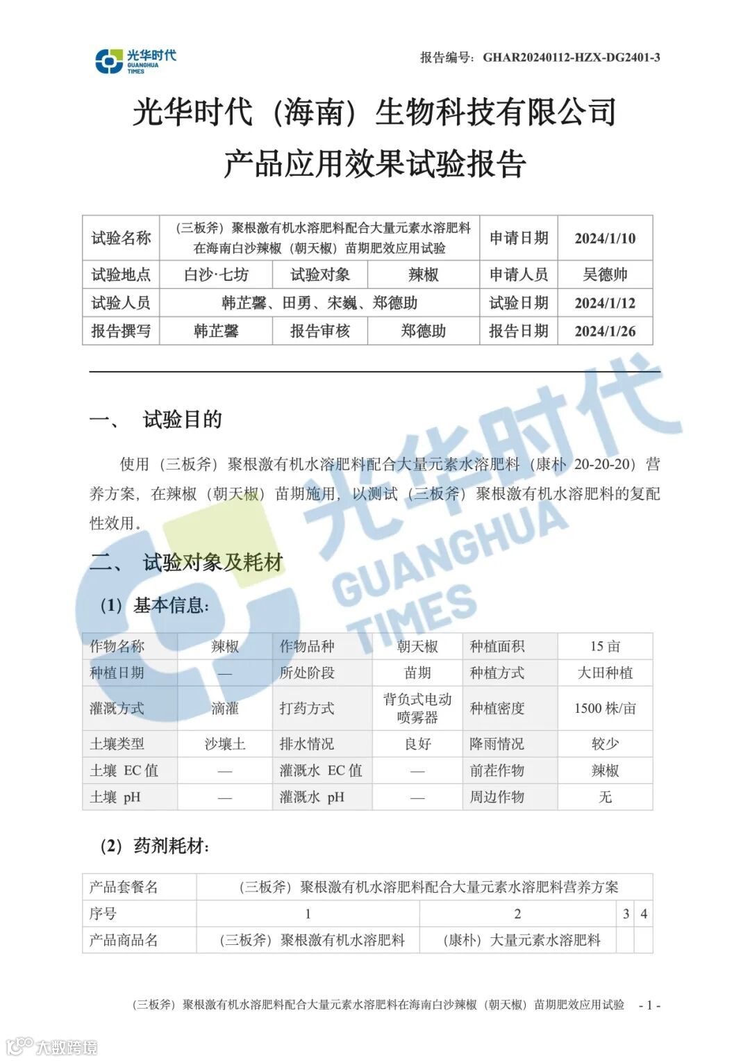 文案 | 数据来源光华时代(海南)生物科技有限公司产品应用效果试验报告《三板斧)聚根激有机水溶肥料配合大量元素水溶肥料在海南白沙辣椒(朝天椒)苗期肥效应用试验》