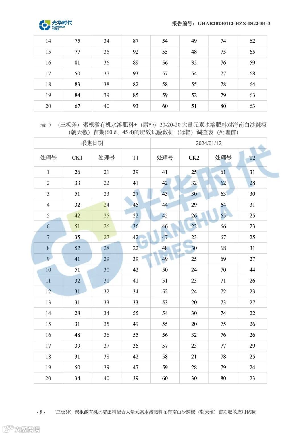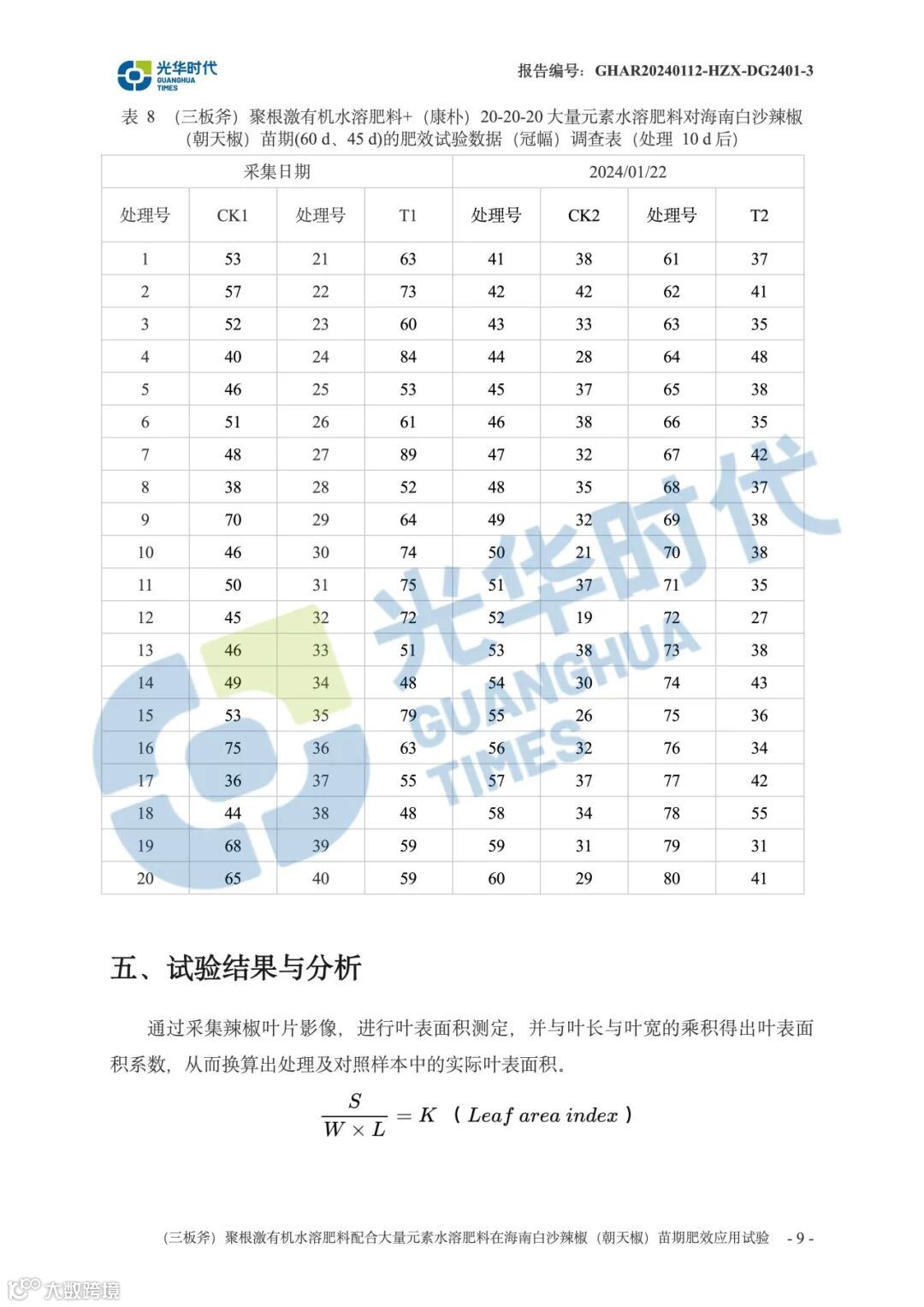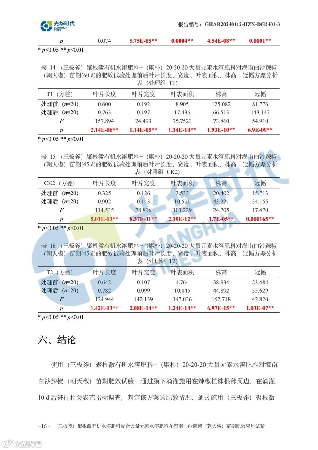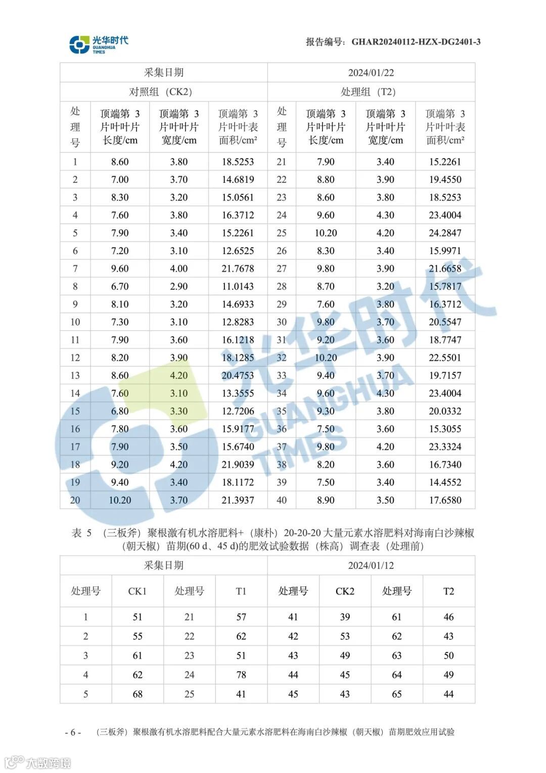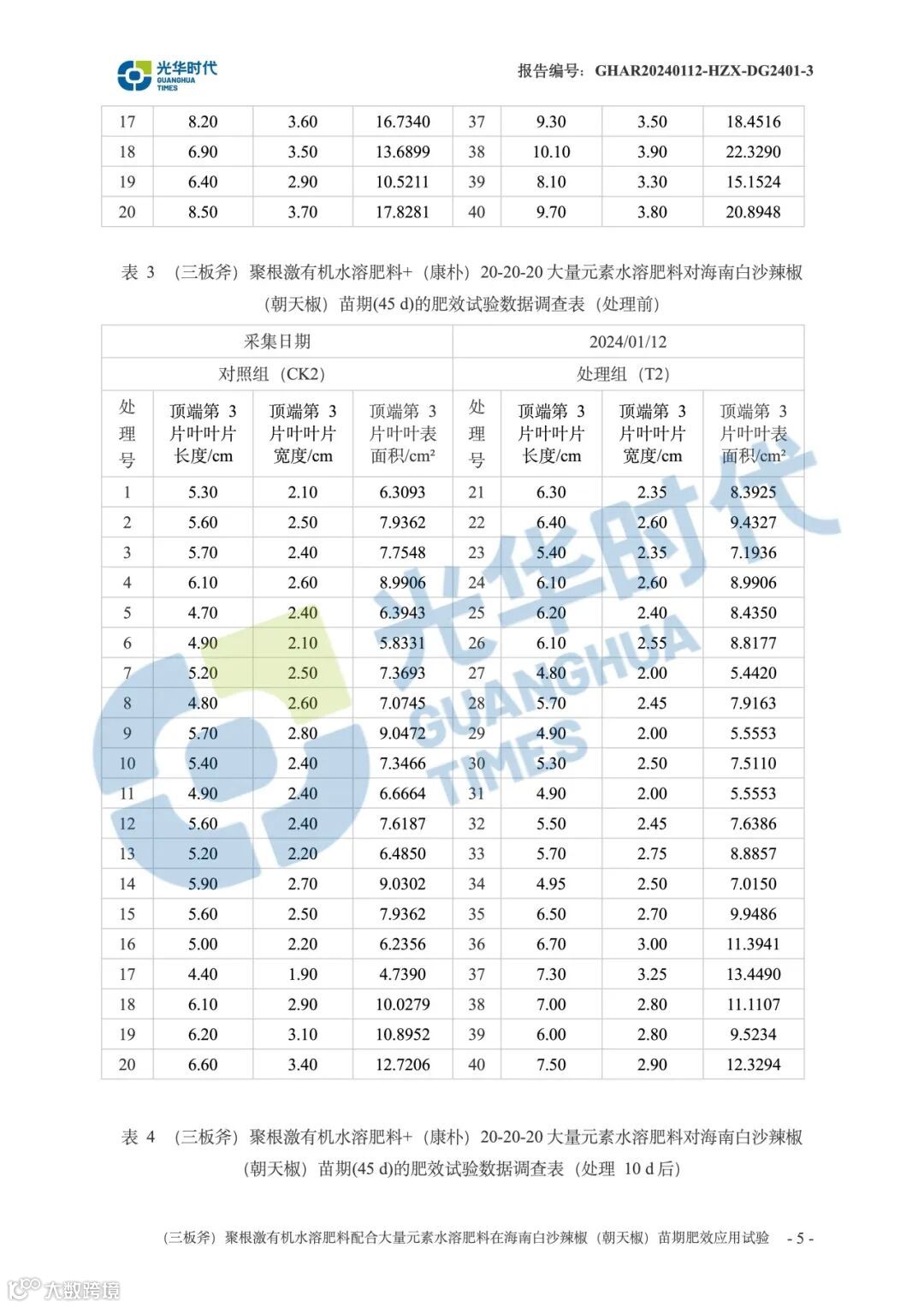 文案 | 数据来源光华时代(海南)生物科技有限公司产品应用效果试验报告《三板斧)聚根激有机水溶肥料配合大量元素水溶肥料在海南白沙辣椒(朝天椒)苗期肥效应用试验》