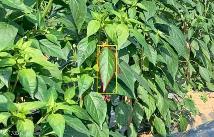 通过采集辣椒叶片影像,进行叶表面积测定,并与叶长与叶宽的乘积得出叶表面积系数,从而换算出处理及对照样本中的实际叶表面积。