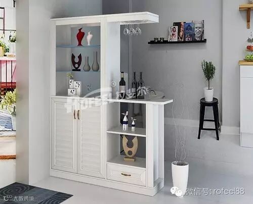 百叶门的玄关柜,还可充当酒柜吧台,下班回家,随手从酒杯架上拿下酒杯,倒上一杯酒品尝能很好的消除一天的疲劳。