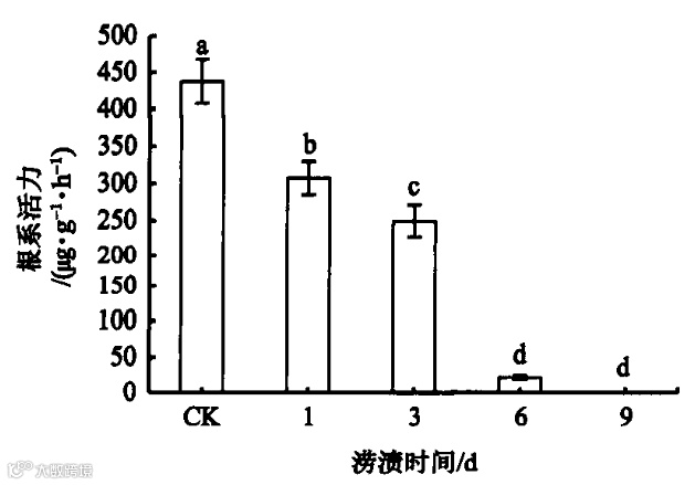 结果表明,持续的涝渍胁迫会使胡椒扦插苗根系的吸收能力不断减弱,甚至丧失。