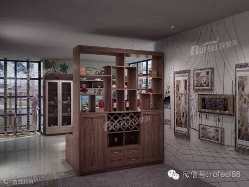客厅玄关柜的间隔应以下面实心,防止外泄,上面以通透为主。因此可以用通透的磨砂玻璃或者空心的博古架之类的。