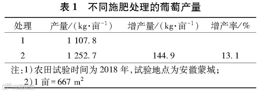 1. 与普通复合肥处理相比,等养分γ-PGA增效复合肥处理的葡萄、洋葱、脐橙分别增产13.1%、6.8%、14.2%。