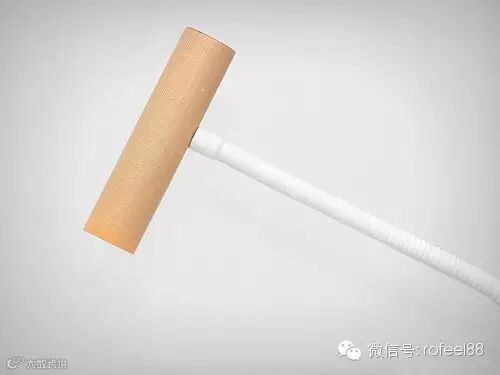 灯头是一个木头质感的小圆柱,几乎没有其他的修饰,就是一个小圆柱的造型,而身体就是一根细细的软管。