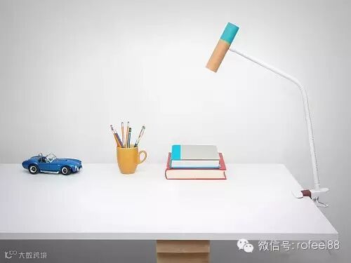 一款很有味道的灯具设计,造型极其的简约,简约到无以复加了吧。一个灯头,一个身体,一个夹子基座。