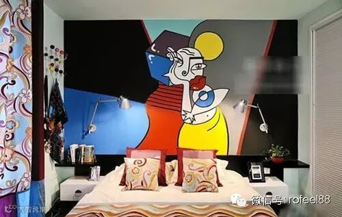 色彩丰富的抽象画是非常艺术的,如果你是一个艺术家或者文艺爱好者,这样的背景墙十分个性哦,很抢眼很有主张。