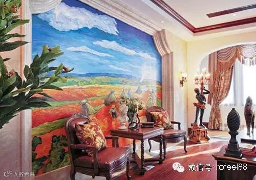 将一幅油画扩大到一张墙面那么大,那么背景墙就成为了生活的背景,田野、天空、草地,你想要为家引入一种怎样的基调和背景呢?