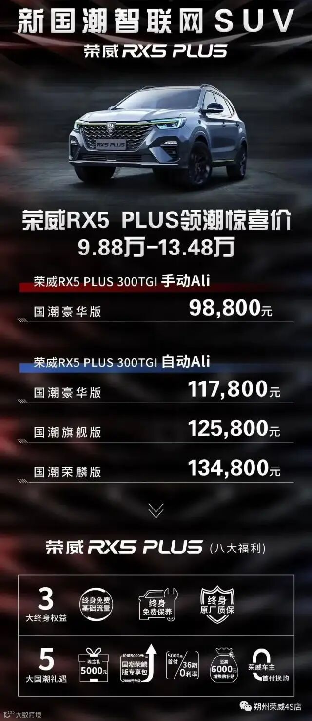 5大国潮礼遇:现金礼5000、国潮荣麟专享包、首付5000元36期免息、6000元置换补贴、荣威车主首付换购