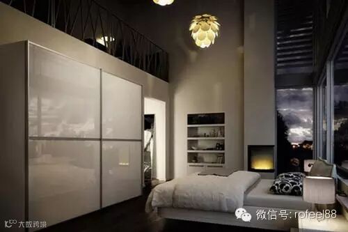 这个卧室的设计整体上非常有设计感,但是整体储物空间却不那么充足,置物基本依赖于床头柜和地面。黑色地毯刚好达到床尾处,强调了睡眠区的存在,也调和了空间的单调感。