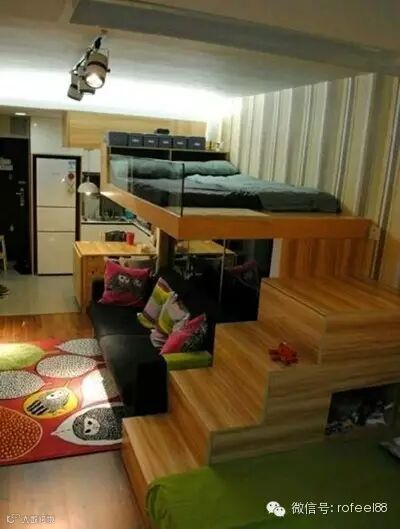 对于小空间来说,上下铺是非常实用的选择。楼梯也被改造成了抽屉和衣柜,解决了没有空间放置衣柜的麻烦。