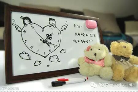 在这组漂亮的墙饰中,小编对这款多功能的挂钟最为爱不释手。这款DIY实木挂钟的表面将能让亲们尽情发挥,任何个人喜欢的图案、文字都可以写在上面,什么贴条,饰品都可以放在上面,而且还有不同的颜色不同的风格,可以说它绝对是一款十分出色的留言板。