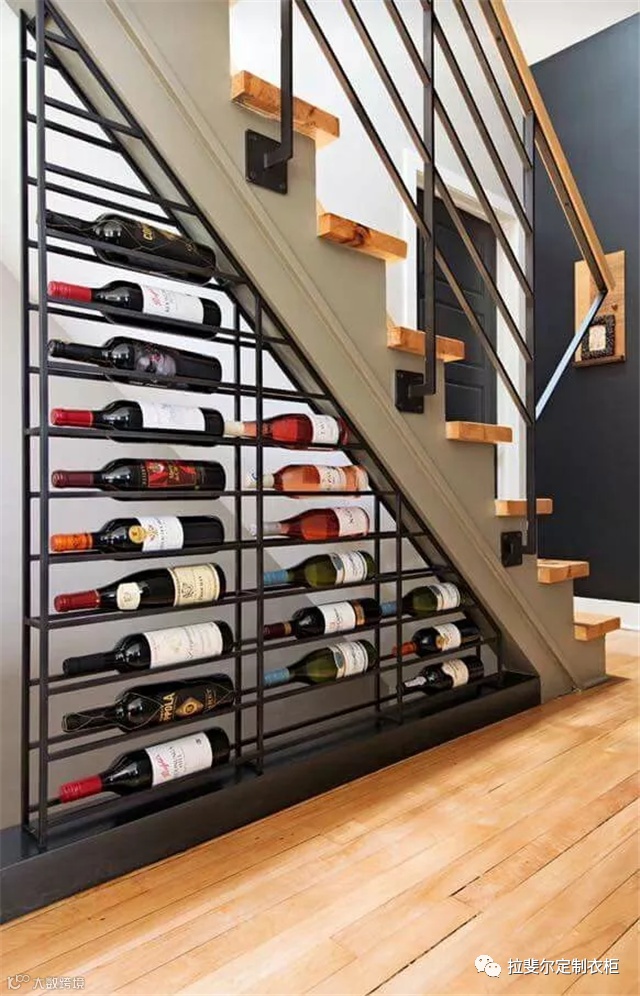 依照楼梯的走势,将这个不规则空间改造成小型办公区,让它变成集办公、装饰、收纳为一体的亮点区域。如果家里有很多藏酒,也可以考虑在这方小小的空间内,勾勒出一个属于自己的“小酒窖”,让家里变得更有品位和高雅。不浪费一寸空间,整体看起来会更有设计感!