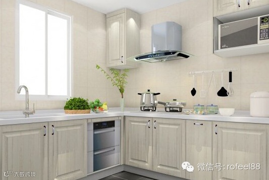 如果厨房开间接近正方形,采用“L”形布置,这种方法能有效利用墙面,操作省力方便,可布置尺寸较长的家具和用具。洗池在厨房的一侧,炉灶偏里靠侧墙,池灶之间以案桌相连。这样的厨房布置,顺序明确,洗、切、烧互不相扰。如果开间较窄,则采用“一字形”单排式布置,即按洗――池案桌――炉灶顺序布置,这种布置操作灵活,方便,是狭长形厨房常用的布置方法。