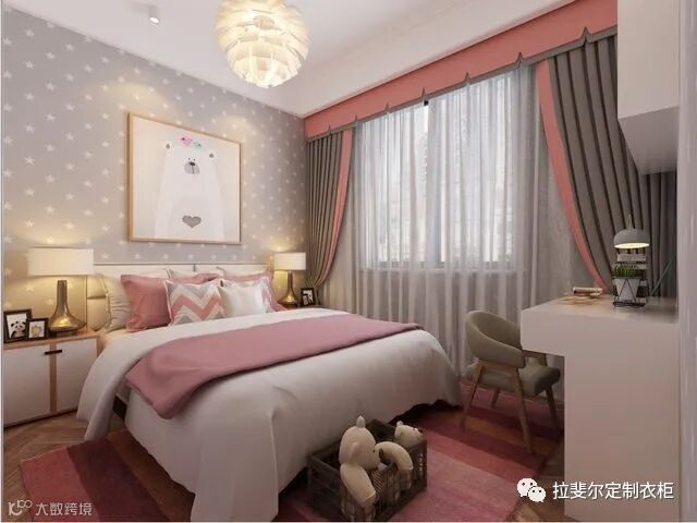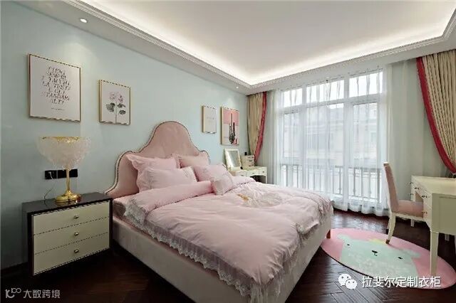 这个东西都叫氛围灯了,说白了就是增加氛围感哒!!!在卧室设计中,灯饰是一个非常重要的环节。一抹温馨的灯光,可以有效提升卧室的浪漫感觉。加上暖色调,让人更加放松!可以选择颜值高的吊灯,搭配上前卫的造型设计,比如云朵形状或羽毛的元素,在灯光的掩映下,提升情调!床头柜可以摆放一盏床头灯,可以压低头灯,增添温馨气氛。