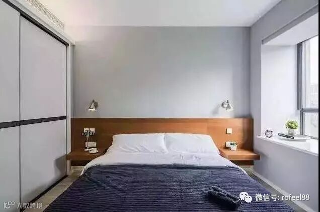 小户型的卧室就要选用定制衣柜,定制入墙式的推拉门衣柜是非常实用的,不仅能合理的利用空间,让整个房间保持整洁,同时还能让卧室增加几平米,既美观又实用。我们还可以将卧室鸡肋的空间利用起来,比如床一边的墙面夹角,可以设计一个定制梳妆台,使室内空间的功能性得到大大的提升,这些都是很人性化的设计。
