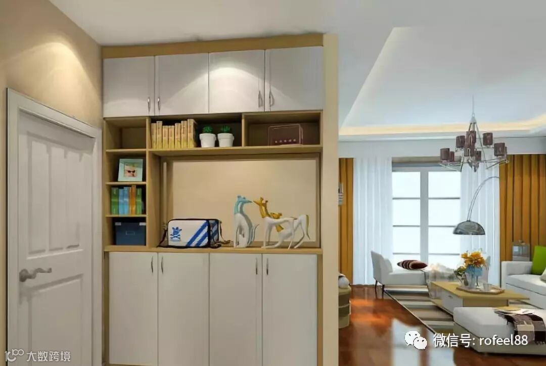 众所周知,有很多户型没有独立的入户玄关,进门即是客厅和餐厅,也就是没有独立的入户过道,这个时候就可以设计一个玄关鞋柜或者隔断式的玄关就可以了。玄关鞋柜可以分为两个部分,左边分为上下两层的鞋柜,下面留空位置可以方便放日常穿的鞋子,右边中间留空位置,做了挂钩可以挂衣帽,平时换鞋子的时候还可以坐下来呢,很实用,也比较大气。