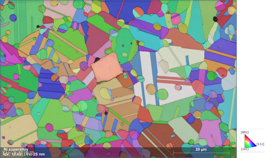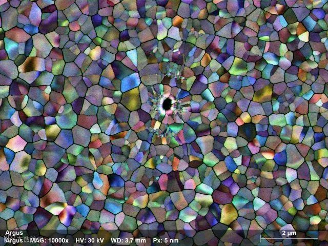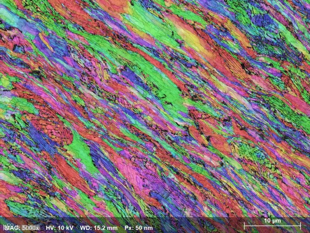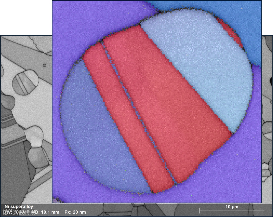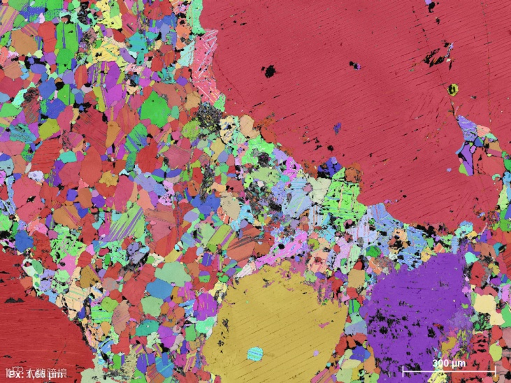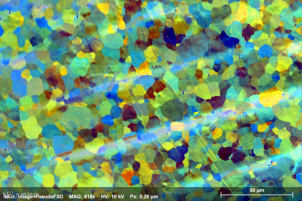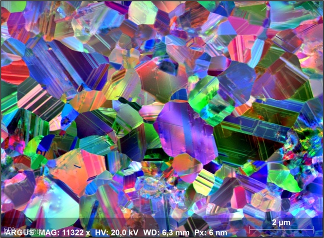 电子背散射衍射(Electron Backscatter Diffraction,简称EBSD)是使用扫描电子显微镜(SEM),或SEM-FIB(聚焦离子束)或电子探针显微分析仪(EPMA)测量和面扫描晶体试样获得晶体学信息的技术。在EBSD设备中,电子束入射倾斜晶体样品,产生的散射电子在荧光屏上形成衍射花样。这些衍射花样可以表征样品扫描区域的晶体结构和取向等晶体学信息,所以,EBSD是一个非常强大的定量微观组织表征工具。EBSD可以测定晶体取向,取向差,晶粒尺寸,织构,应变分析,晶界特性表征,相识别和相鉴定,断裂分析等。EBSD技术已经应用到了金属加工、航空航天、汽车、微电子、地球科学等实际工业生产中,是一项非常成熟的获取样品晶体学信息的手段。