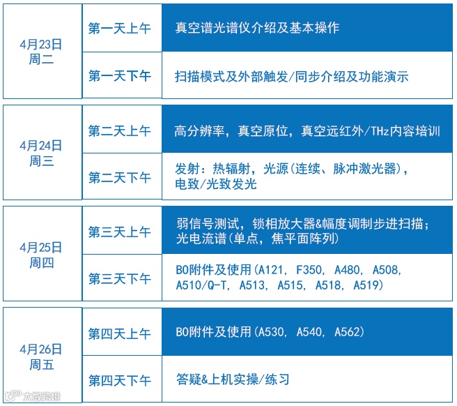 为做好布鲁克仪器的配套服务工作,便于用户与行业发展共俱进。布鲁克公司将于4月23-26日(周二至周五)在上海举办一场“布鲁克中红外高端用户培训会”,解决用户实际应用中遇到的问题,帮助用户更好的使用红外光谱仪器,并颁发培训证书。届时应用专家将与您共同分享红外光谱技术的经验方法,现场解答相关技术问题。
