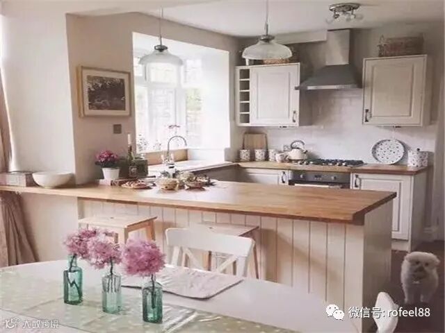 厨房和餐厅可以考虑用吧台用隔断。吧台在厨房与餐厅之间,既能够当作吧台使用,也能够当做厨房的操作台使用,隔离空间的同时又一举两得!