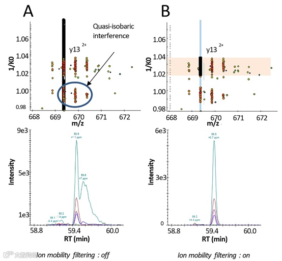 图2:用TIMS prm-PASEF通过离子淌度过滤掉干扰离子