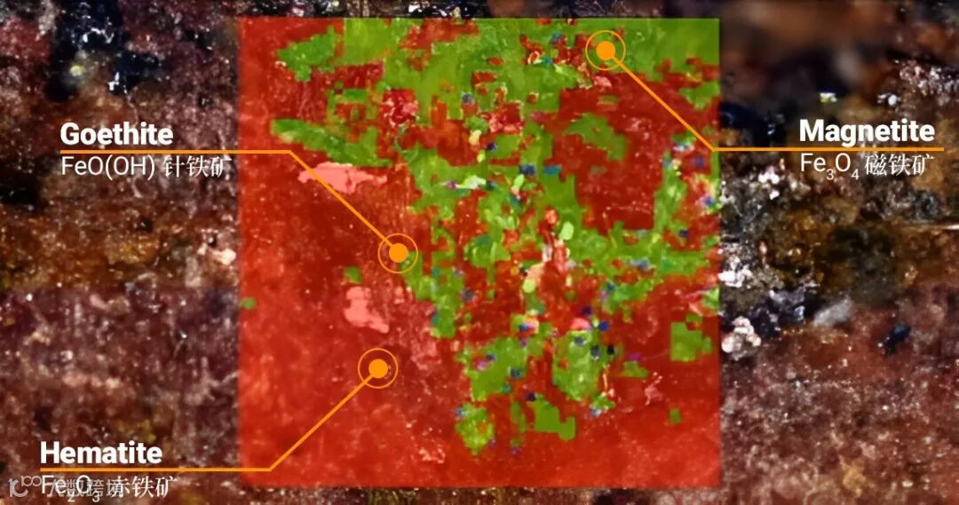 下面我将用一个未经抛光的铁矿石样品阐释这一点。我们使用布鲁克SENTERRA II拉曼显微镜对该样品进行了分析。我们对样品进行了快速拉曼谱图采集。通过将测量的光谱与光谱数据库进行比较,可以立即鉴定出样本中存在的矿物质。SENTERRA II是进行这类样品分析的绝佳选择,因为它具备高度自动化,快速,简便拉曼成像特点。