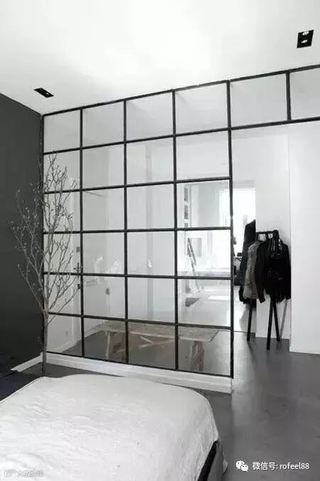 当然如果不喜欢这种开放式布局,还能采用玻璃隔断,一来空间有了划分,二来玻璃能够很好地反射光线。
