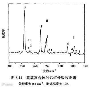 众所周知,直拉单晶硅中含有较高浓度(浓度范围1017-1018cm-3)的间隙氧(Oi),当氮掺入直拉硅单晶中时,除了以氮-氮对(N-N)形式存在以外,氮还会和氧作用形成氮氧复合体(N-O complexes)。研究显示氮氧复合体会引起红外的局域模振动吸收和电子跃迁吸收,可以被红外吸收光谱技术探测到。在低温(10K左右)条件下,氮氧复合体在远红外波段有一系列由于电子跃迁产生的吸收峰,目前已经报导了7种氮氧复合体[1,2,3]。