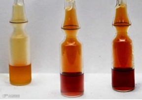 图2:红棕色的二氧化氮与四氧化二氮(N2O4)在0°C、> 23°C、>35°C的温度条件下达到平衡。