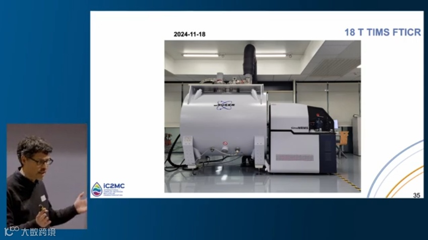 鲁昂大学/法国国家科学研究中心Carlos Afonso博士介绍了18T timsMRMS的项目起源、落地、安装和运行。他们在对石油炼制过程中脱除含氮化合物(碱性氮)的分子组成研究中发现,现有的淌度质谱技术仍无法满足一些同分异构分离的需求。2019年,他们首次将TIMS技术与FTICR MS技术联用,并成功应用于泰坦行星中大气雾霾类似物(tholins)的可溶性成分进行了高分辨率分析。结果显示,tholins主要由含氮有机物构成,其结构呈现支化氮杂多环芳烃(N-PAH)特征,且随着质荷比增加,异构体多样性先线性增长后趋于稳定。鉴于TIMS和FTICR MS对超复杂有机体系的应用潜力,鲁昂大学与布鲁克和欧洲其他科研单位展开合作,在经过三年的探索,在2024年11月,全球第一台18T timsMRMS顺利安装,而通过测试生物油样本,在单次扫描下18T timsMRMS实现了质量误差低至 1ppb的高精度检测。