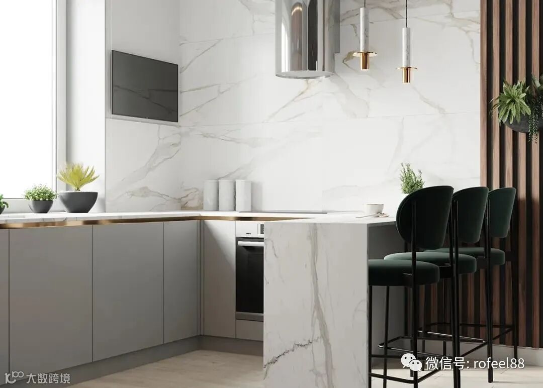 为了尽可能地利用角落空间,设计了U型厨房。储物空间多,操作台面更宽,有足够的弯腰和转身空间。