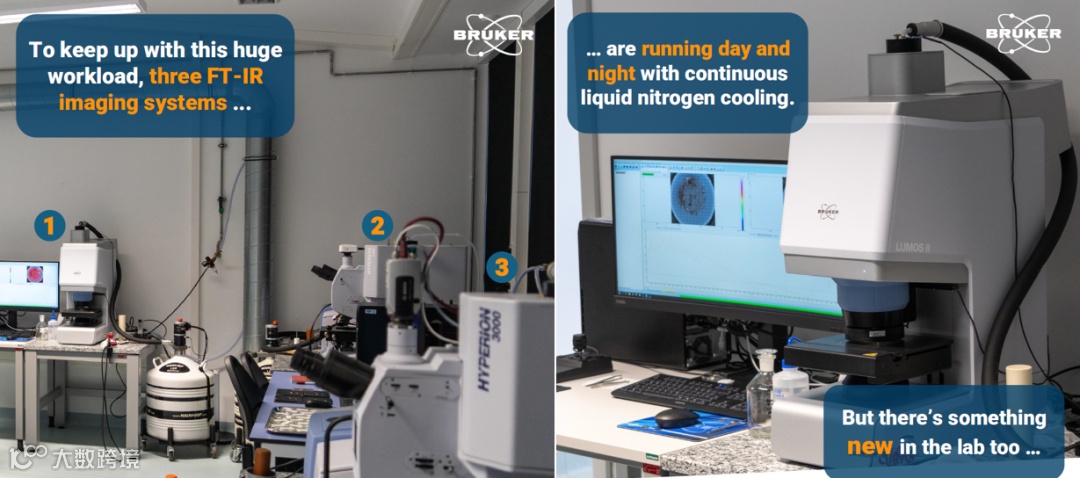 阿尔弗雷德.韦格纳研究所作为全球微塑料研究的著名机构,每天都会有来自全球各地的大量微塑料样本送达该研究所,这就对仪器的测试速度和通量提出了很高的要求。布鲁克公司独家的焦平面阵列红外显微镜HYPERION II和LUMOS II单次扫描可采集数千张红外光谱,无须复杂前处理,仅需将液体通过滤膜,就可以对过滤有微塑料的滤膜全表面快速成像,通过强大的OPUS软件快速得出微塑料种类、数量和尺寸分布等统计信息,既极大的提高了微塑料分析的速度,同时通过对滤膜整体成像的方式也有效地避免了漏测和误判交叠在一起的微塑料。韦格纳研究所对这一技术十分认可,采购了多台这两个型号的红外显微镜进行微塑料测试。同时,为了24小时不间断地测试样品,他们还自制了持续供应液氮的系统,确保检测器始终处于可工作的低温。