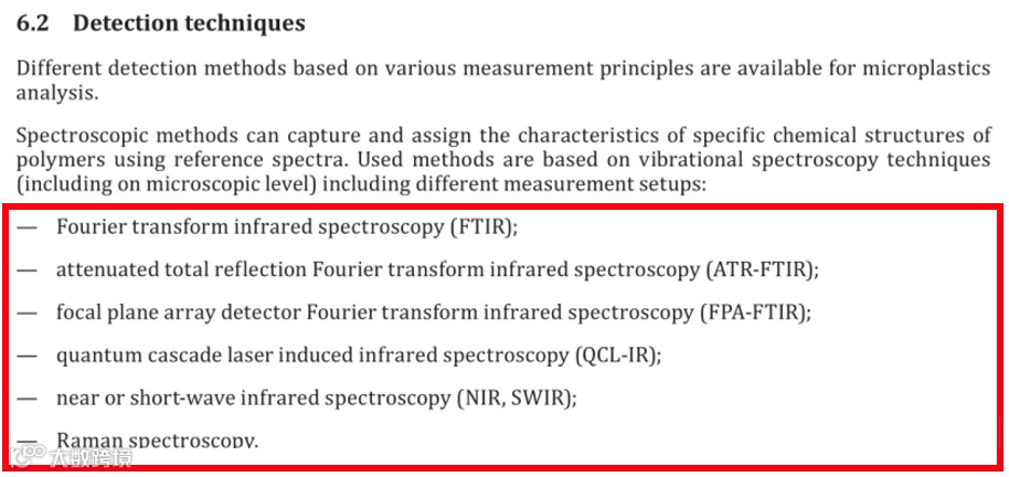 普通的红外光谱仪既无法测试几到几十微米的微塑料,也无法对该尺寸的微塑料进行微区定位。而显微红外创新地融合了显微成像与红外光谱技术,凭借微米级空间分辨率与分子振动特征解析能力,使其成为了微塑料检测领域最高效的方法。微塑料检测的国际标准ISO24187-2023中提到了6种微塑料检测的光谱方法,分别为FTIR、ATR-FTIR、FPA-FTIR、QCL-IR、NIR/SWIR和Raman。布鲁克是唯一能全部提供上述6种光谱技术和一整套解决方案的仪器制造商,而在这6种技术中,又以FPA-FTIR 和FPA-QCL-IR的测试速度最快。