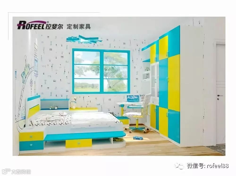 3、切忌颜色太刺眼、忌用黑白 儿童房内部的颜色对小孩的心态有很重要的影响,首先色泽要淡雅,不可以用太刺眼的大红大紫色,避免刺激小孩,也忌用黑色及纯白色,而用淡蓝色为底点缀一些草绿、明黄、粉红的色泽则较好。