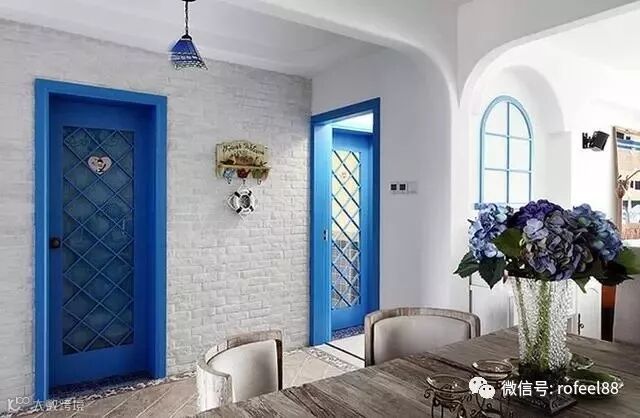 每当你看到这样一幅景象:白灰泥墙,连续拱廊,拱门,陶砖,海蓝色的屋瓦、门窗,别犹豫它就是传言中的地中海风情,请尽情地闻闻那异国咸咸的海风吧!