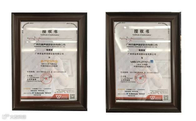 业辉音响再次迎来国际音响品牌的授权证书5张!