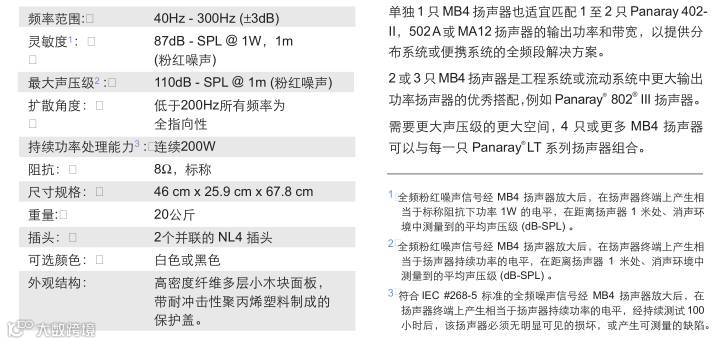 灵敏度:87dB-SPL,1w,1m(粉红噪声)