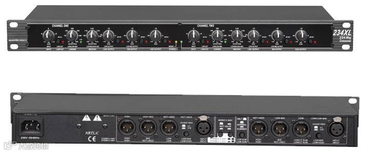立体声二分频,单声道三分频电子分频器。TRS或XLR差分平衡输入和输出。可选择立体声或由左右声道相加而合成的超低音。两通道均有x10范围选开关。两个通道均有40Hz高通滤波器(底频切除)。所有的输出均带相位反转开关。所以频段上的输出电平均可独立调整dB/oct Linkwitz-Riley滤波器(专业标准)。立体声/单声道状态指示LED灯,表明单元所选择的工作模式。