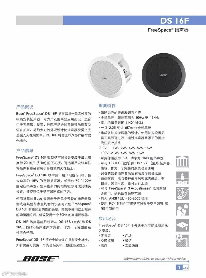 BOSE 博士 FreeSpace® DS 16F 高保真吸顶喇叭 定阻定压 DS16F 博士BOSE ds16F 吸顶定压定阻音箱 会议背景音乐喇叭 全天候吸顶扬声器,壁挂音箱,会议室音响,博士BOSE FreeSpace DS16F 吸顶音响 DS-16F 音箱 DS 16F