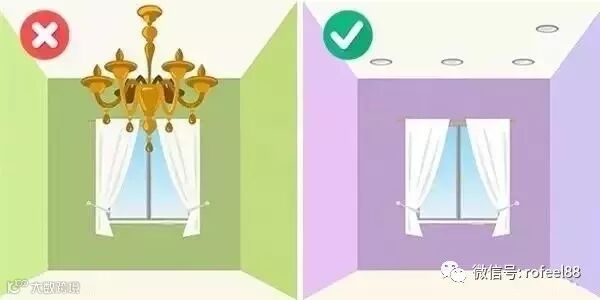 吸睛又颇具复古风格的垂挂式吊灯虽美,但却会把高度压小,使得空间感更加闭塞。可以尝试使用内嵌式灯具,这样能让天花板看起来干净又整齐,视觉上拔高房间高度。除此之外,内嵌式灯具不易招尘,且光线分布均匀。