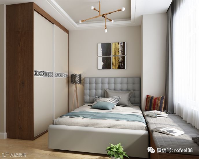 整个卧室的面积不宜过大,但是一定要有足够的空间,否则容易导致人形成抑郁情绪。再者,床的大小和卧室的面积要有一个舒适的比例,不可过大亦不可过小,过大则感觉空间压抑,过小则显得房间空荡。