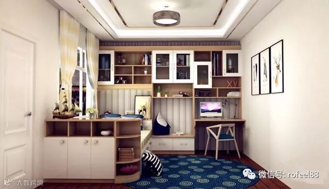 除了书柜还可以摆放家居饰品展示柜,沙发背景墙,飘窗背景墙、电视背景墙、客厅通道墙面这些墙面的空间都可以充分利用起来。如果柜子还有空间,可以将其他杂物放进漂亮的收纳箱里再放到柜子里。