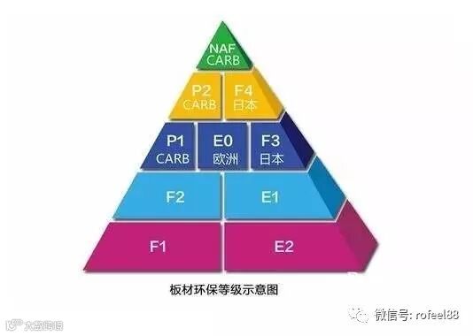 先看看这张家具、装饰材料板材环保等级示意图,金字塔尖表示环保等级最高。
