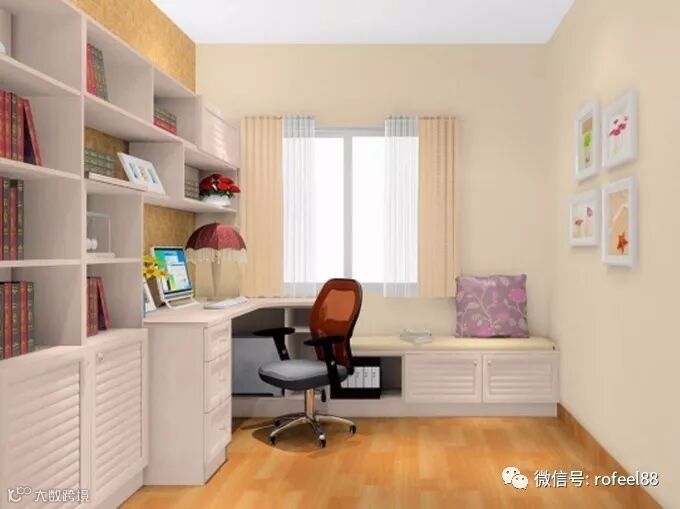 对于小户型而言,组合式书柜是最受业主青睐的设计了。定制家具的优势在于灵活组合,如折叠床,需要的时候可以翻开躺着休息,不需要的时候可以折叠隐藏起来,一点都不占空间。