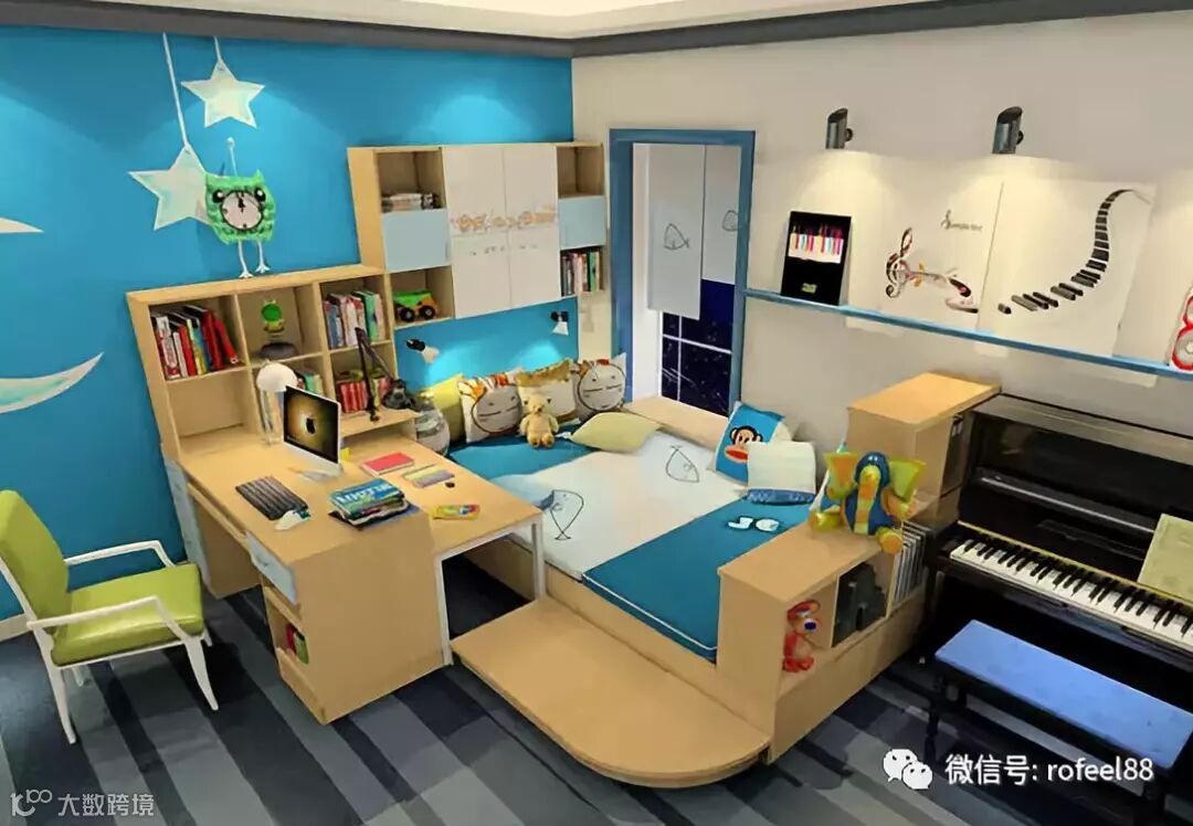 拉斐尔贴心建议:可以在儿童房书桌旁设计卡座,或将学习区靠近床边,无论是做手工还是学习,细心辅导能让他进步得更快;