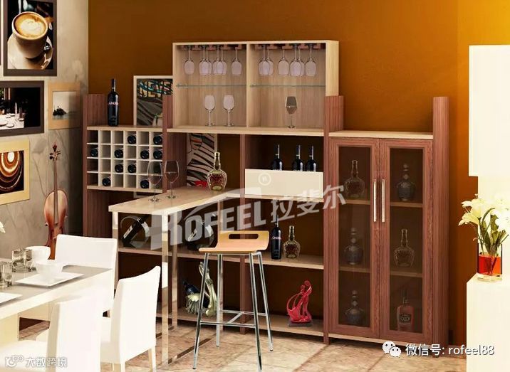 现代生活中家庭酒柜更多把酒柜融入间厅柜、墙壁、橱柜、装饰柜中。由于考虑到房屋面积、结构和原有家具设计的客观条件等因素,现在家庭酒柜的实用性与功能性多合二为一了。